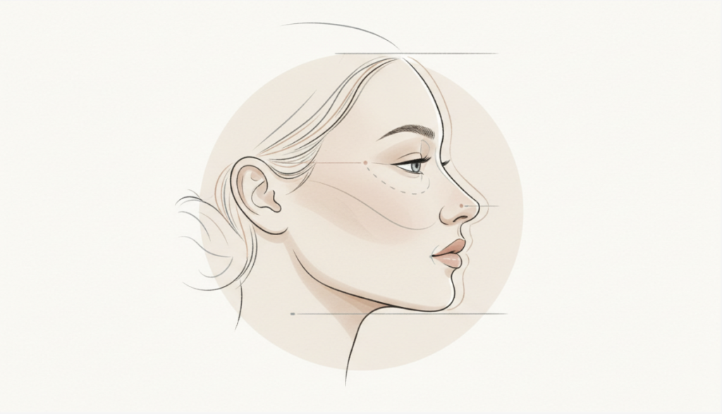 鼻先と顎先を結んだ直線上、もしくはその内側に唇が収まっている状態が理想とされています。このラインが整っていると、横顔全体に上品で洗練された印象が生まれます。